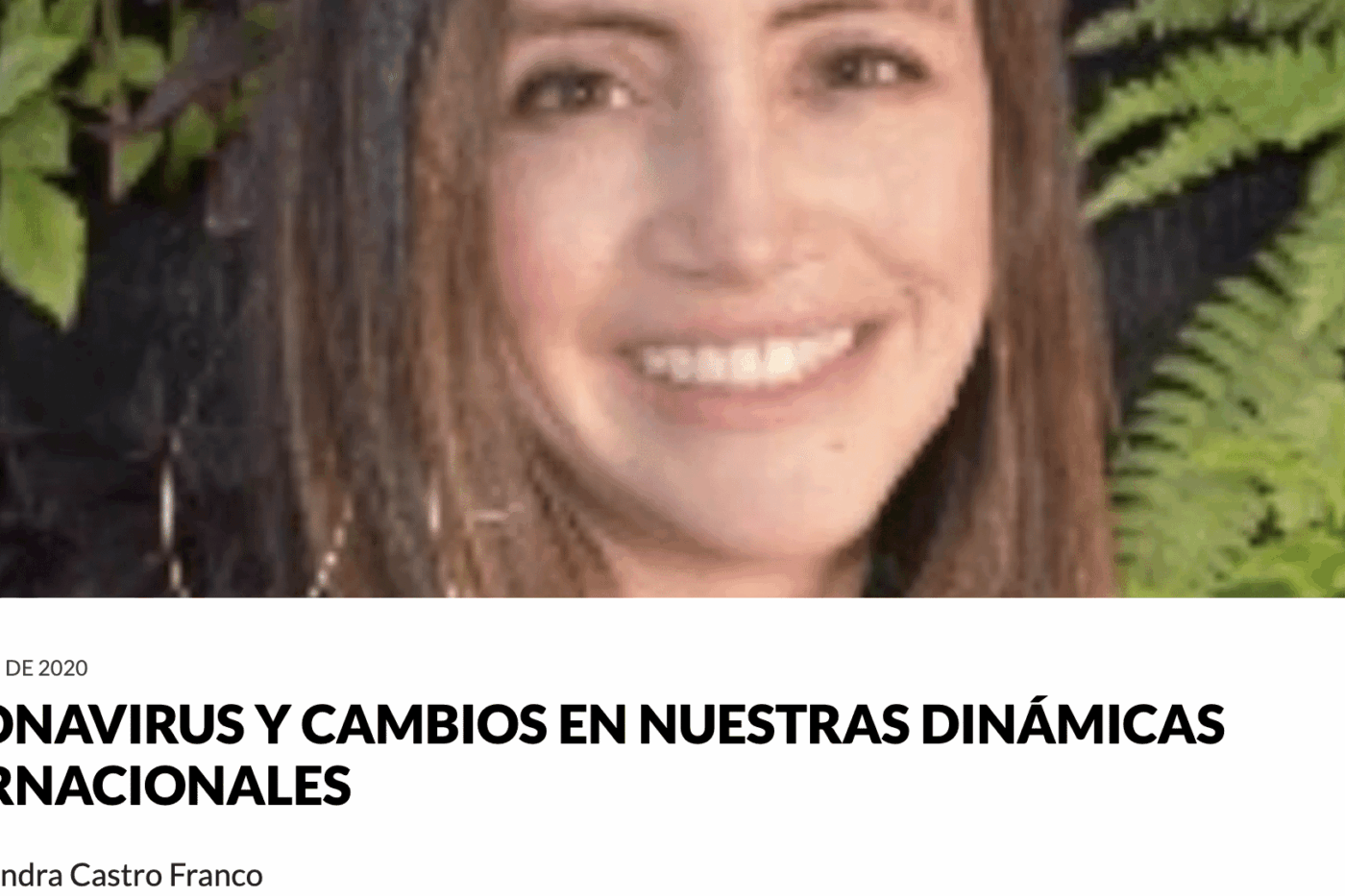 CORONAVIRUS Y CAMBIOS EN NUESTRAS DINÁMICAS INTERNACIONALES